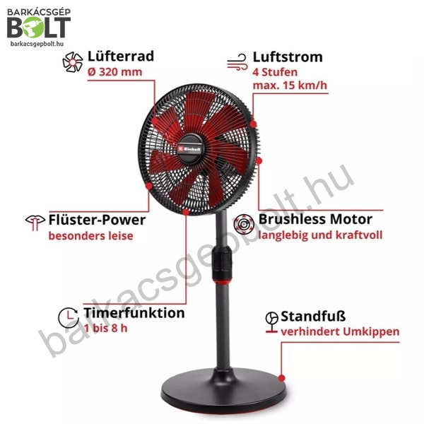 Kiváló minőségű álló akkus ventilátor az EINHELL-től. Einhell GE-CF 18/320 P Li-Solo akkus ventilátor gyors szállítással.