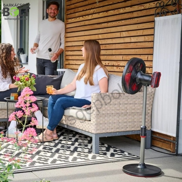 Az Einhell GE-CF 18/320 P Li-Solo akkumulátoros ventilátorral mindig friss szellő fúj – akár otthon, akár a kertben, akár a kempingben. Az optimális szellőzést beltéren és kültéren az innovatív Power X-Change termékcsalád nagy teljesítményű lítium-ion akkumulátora biztosítja. A készüléket egy Einhell kefe nélküli motor hajtja. Ez a kefe nélküli motor nagyobb teljesítményt és hosszabb üzemidőt kínál, mint a hagyományos szénkefemotorok. Az online regisztráció után a kefe nélküli motorra 10 év garancia vonatkozik. A légáramlás 4 fokozatú beállítása suttogóan csendes működést tesz lehetővé: hosszú üzemidő csendes éjszakai működéshez vagy max. légáramlás 15 km/h-nál. A hűvös szellőt a Ø 320 mm-es ventilátorkerék generálja. A ventilátorfej fokozatmentesen előre és hátra dönthető, amíg el nem éri a kívánt helyzetet. Ezenkívül az akkumulátoros ventilátor oszcillációs funkcióval van felszerelve. A ventilátorfej automatikusan elfordul -60° és +60° között. A stabil állványt a teleszkópos fogantyúval ellátott robusztus állvány biztosítja. Ennek magassága 42,5 cm-től 72,5 cm-ig fokozatmentesen állítható. A nagy teljesítményű Power X-Change akkumulátorok extra hosszú üzemidőt biztosítanak. Például a talapzatú ventilátor akár 43 órán keresztül is működik 5,2 Ah-s akkumulátorral. 1-8 óra választás után az akkumulátoros ventilátor az időzítő funkciónak köszönhetően automatikusan kikapcsol. Az Einhell GE-CF 18/320 P Li-Solo akkumulátoros ventilátor Power X-Change akkumulátor és töltő nélkül kapható. Ezek külön kaphatók.