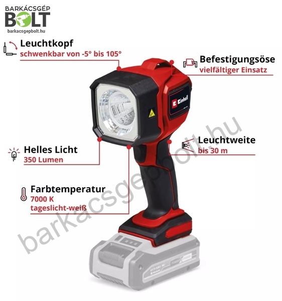 Megbízható kézi akkus lámpa az EINHELL-től. EINHELL TC-CL 18/350 LI-solo gyors szállítással.
